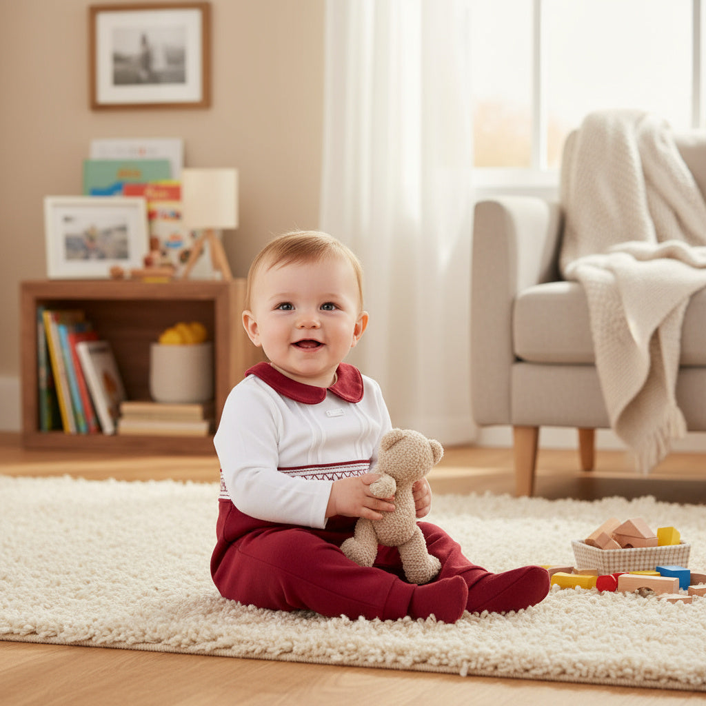Regular price £27.00A charming piece from Amore’s Autumn Winter collection, this boys’ red smocked romper combines traditional British design with cosy comfort. The smocked bodice features delicate detailing and gentle gathers, while the soft romper allows for easy movement and everyday wear.