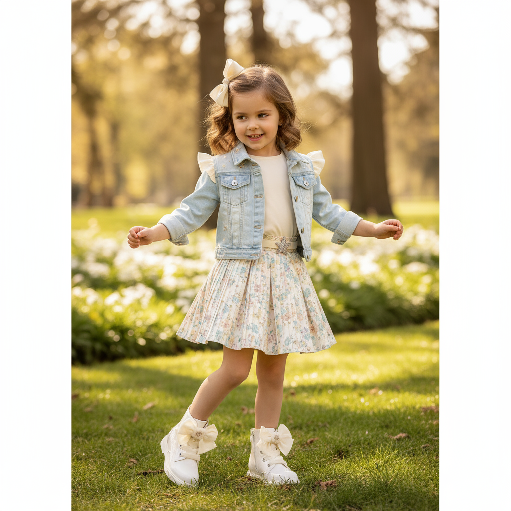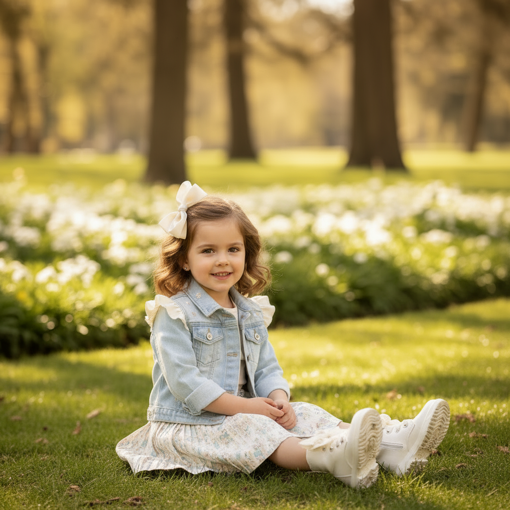 These elegant boots come in a glossy patent ivory finish and are styled with a beautiful oversized bow for a timeless statement look. Designed with versatility in mind, they include interchangeable lace options – soft suede–style bow laces for a chic boutique touch, or classic chunky laces for a smarter finish. A practical side zip fastening ensures quick and easy wear, while the chunky sole provides comfort, grip, and support for busy little feet.