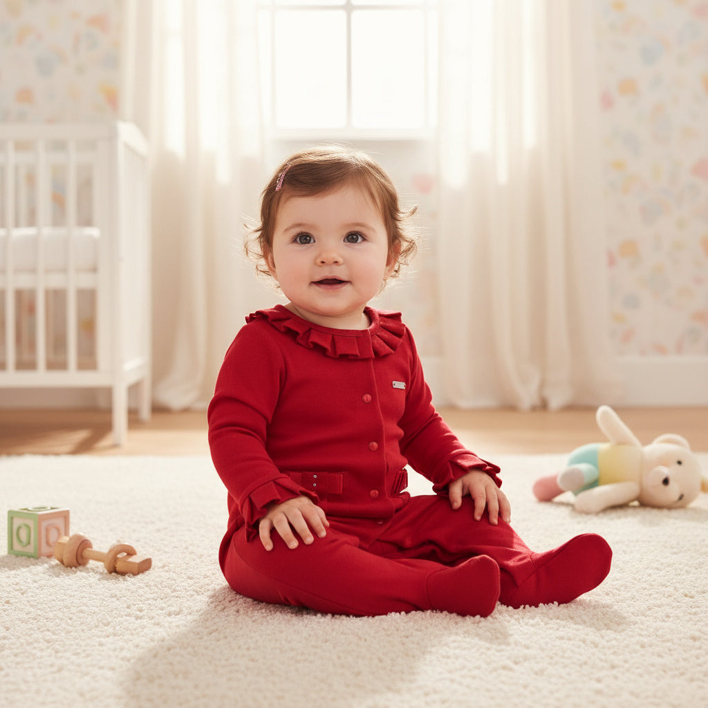 Baby Girls Red All-in-One with Pleat Detail | Autumn/Winter