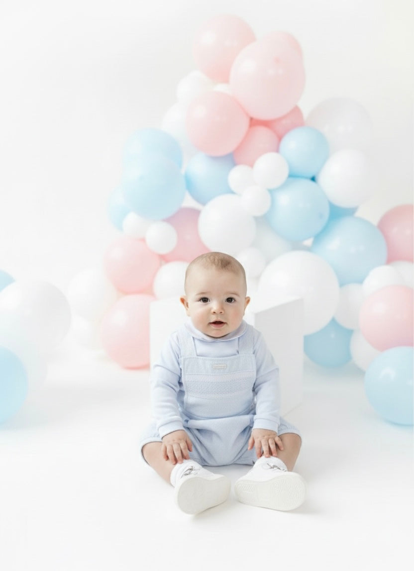 Add a touch of boutique elegance to your little boy’s wardrobe with this baby boys’ blue bloomer dungaree set from Blues Baby, part of their Autumn Winter collection. The dungarees feature a delicate smocked design on the front, paired with a long sleeve collar top in matching blue for a coordinated, classic look. Crafted in premium-quality fabrics, this set is soft, durable, and designed for comfort, making it a standout piece in any nursery wardrobe.