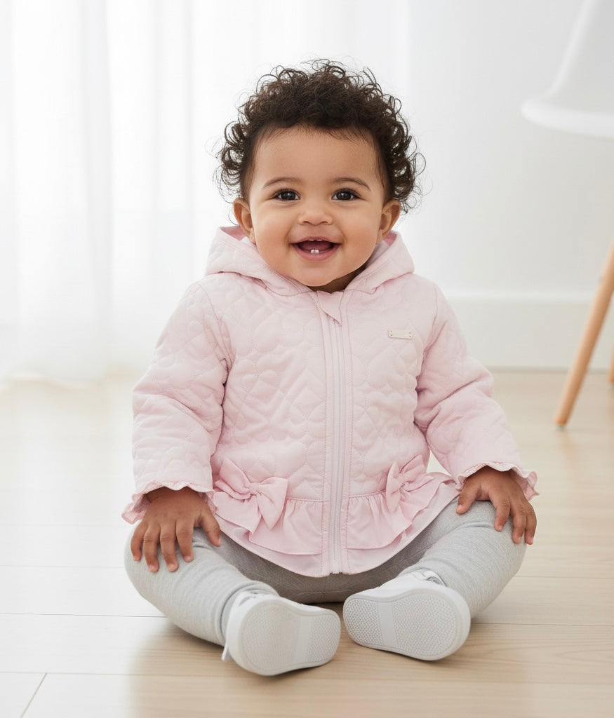 Girls Pink Quilted Hooded Jacket with Bows | Autumn/Winter