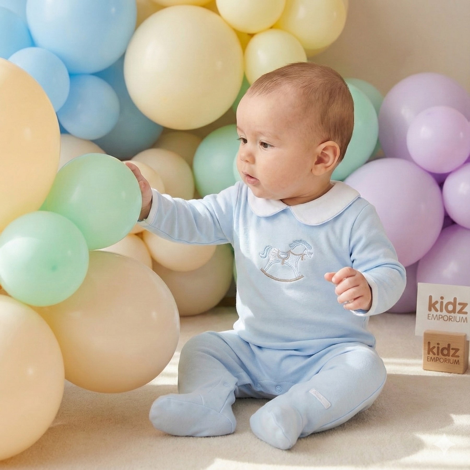 Baby Boys Blue All-in-One with Rocking Horse Motif | Autumn/Winter