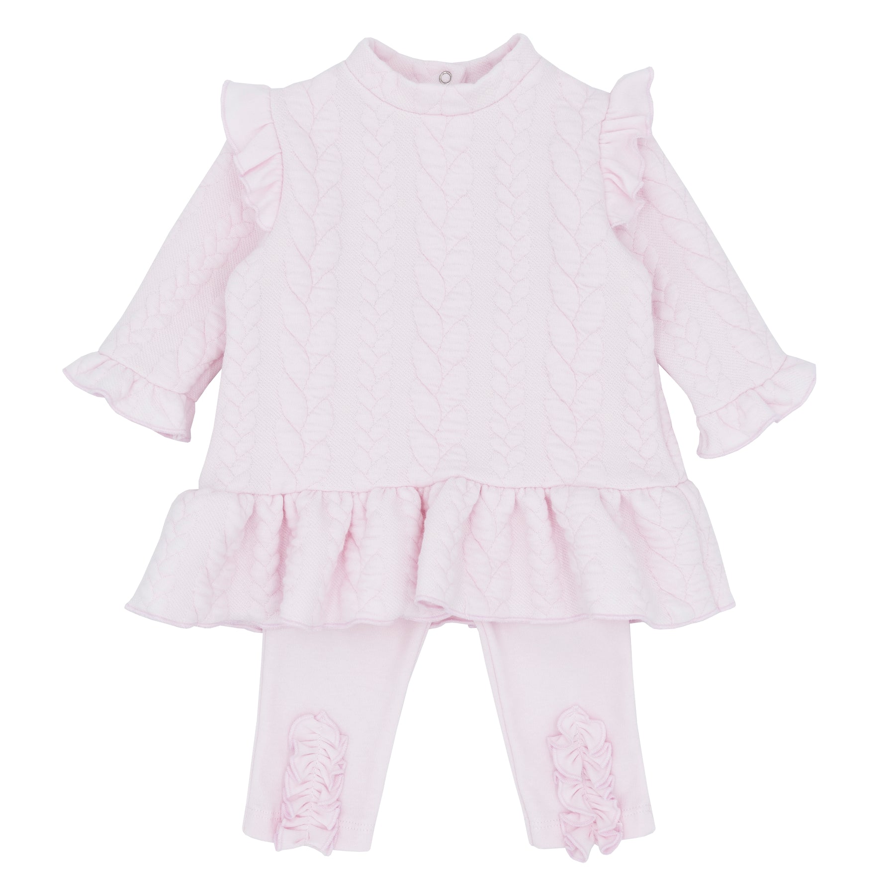 Girls Pink Aran Cable Tunic and Legging Set with Frill Details | Autumn/Winter