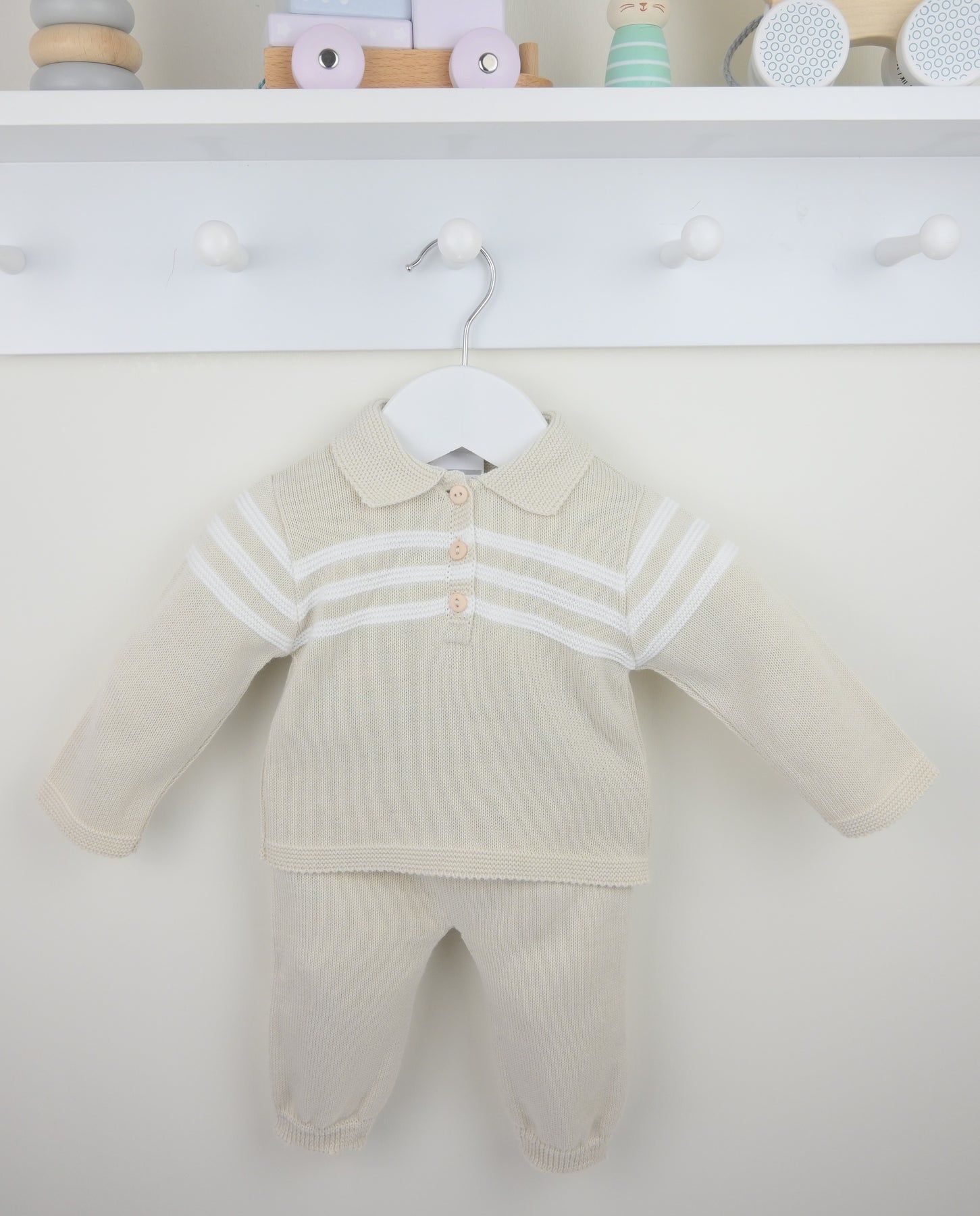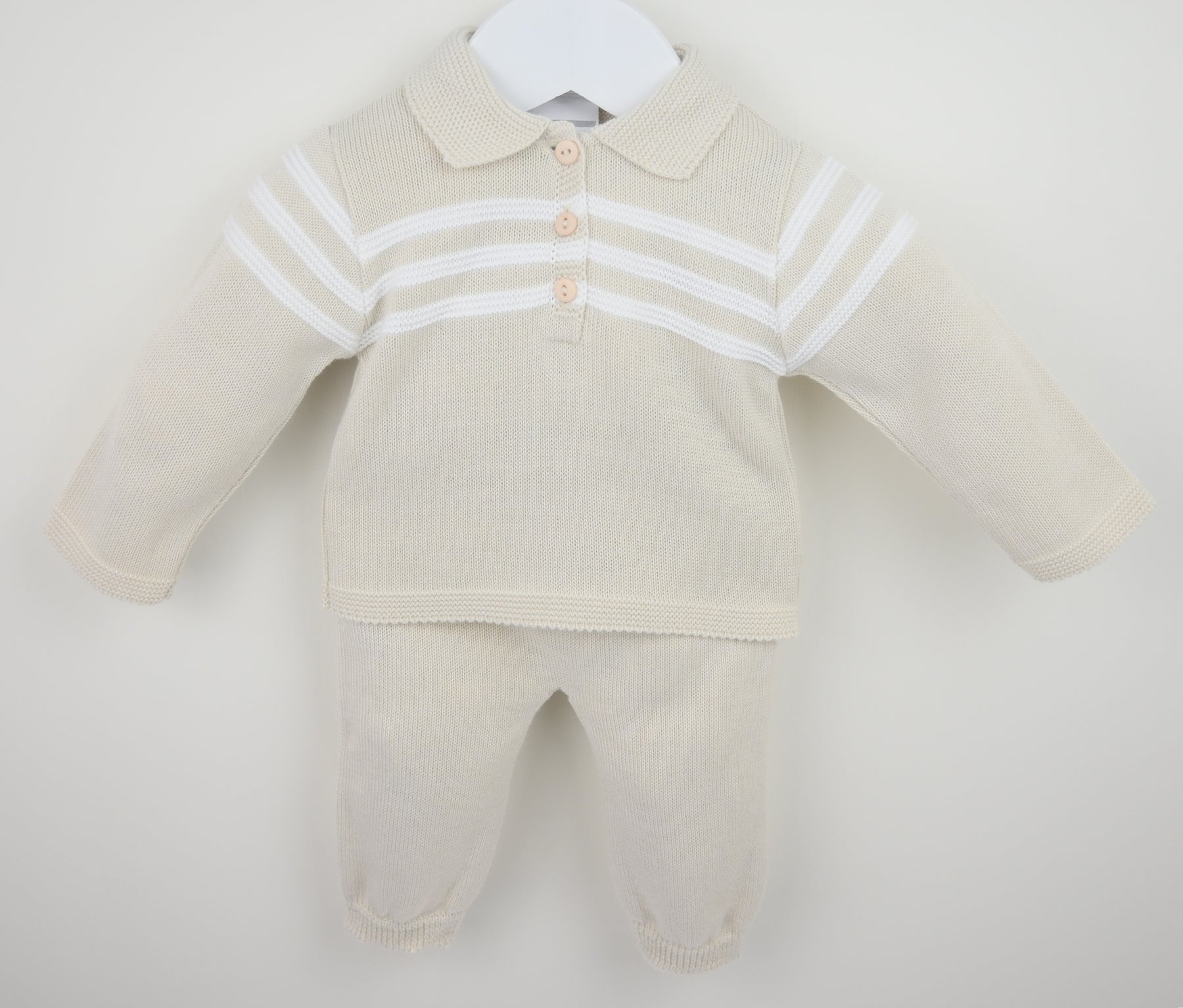 Boys Natural Knitted Mateo Polo Shirt and Trousers Two Piece Set